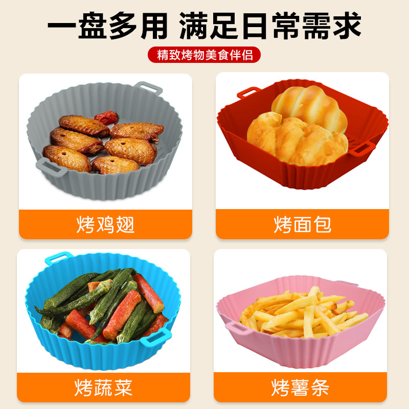 空氣炸鍋硅膠烤盤易清洗不粘油硅膠炸鍋墊可重復(fù)使用空氣炸鍋墊