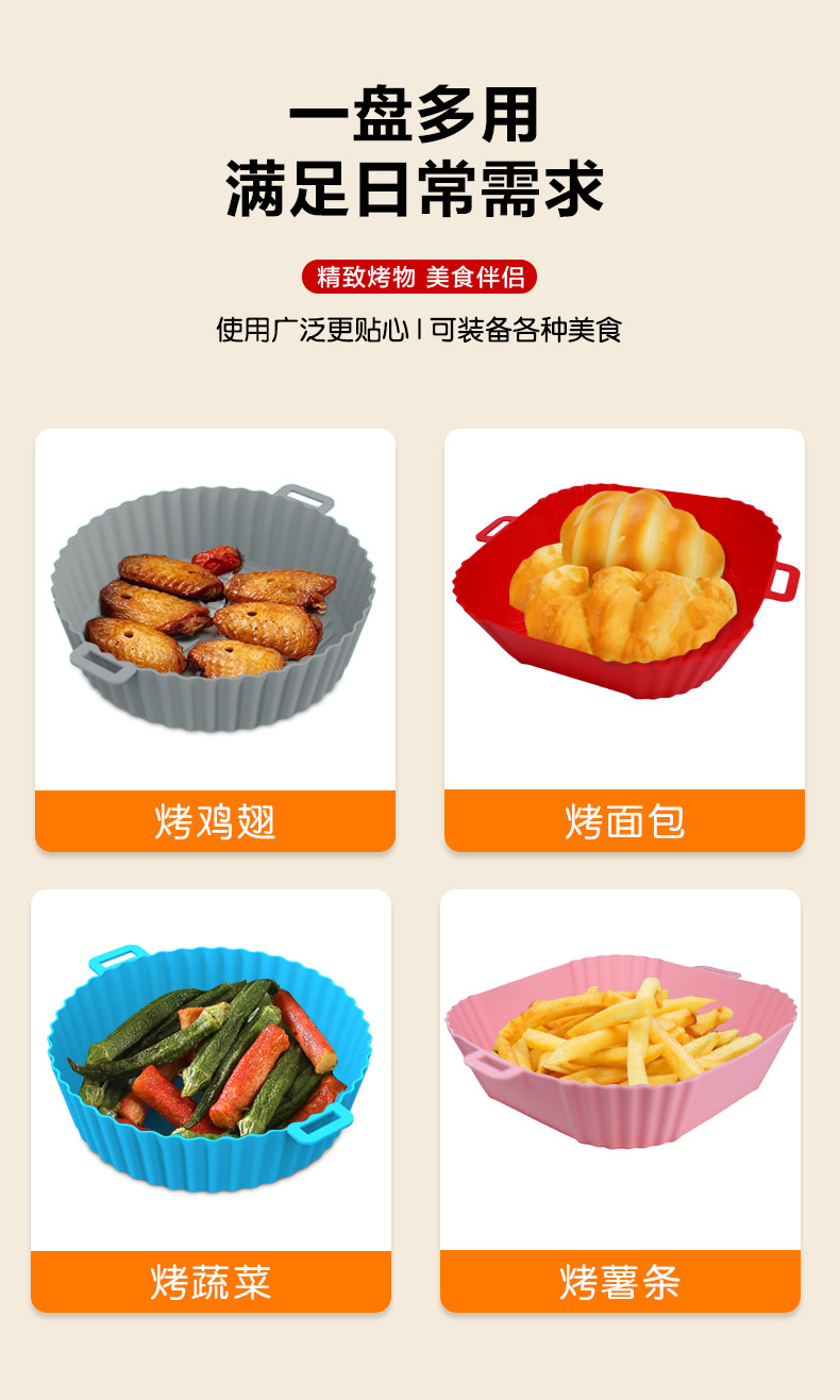 您的位置:首頁 > 產(chǎn)品中心 > 硅膠廚具用品 > 空氣炸鍋硅膠烤盤易清洗不粘油硅膠炸鍋墊可重復(fù)使用空氣炸鍋墊