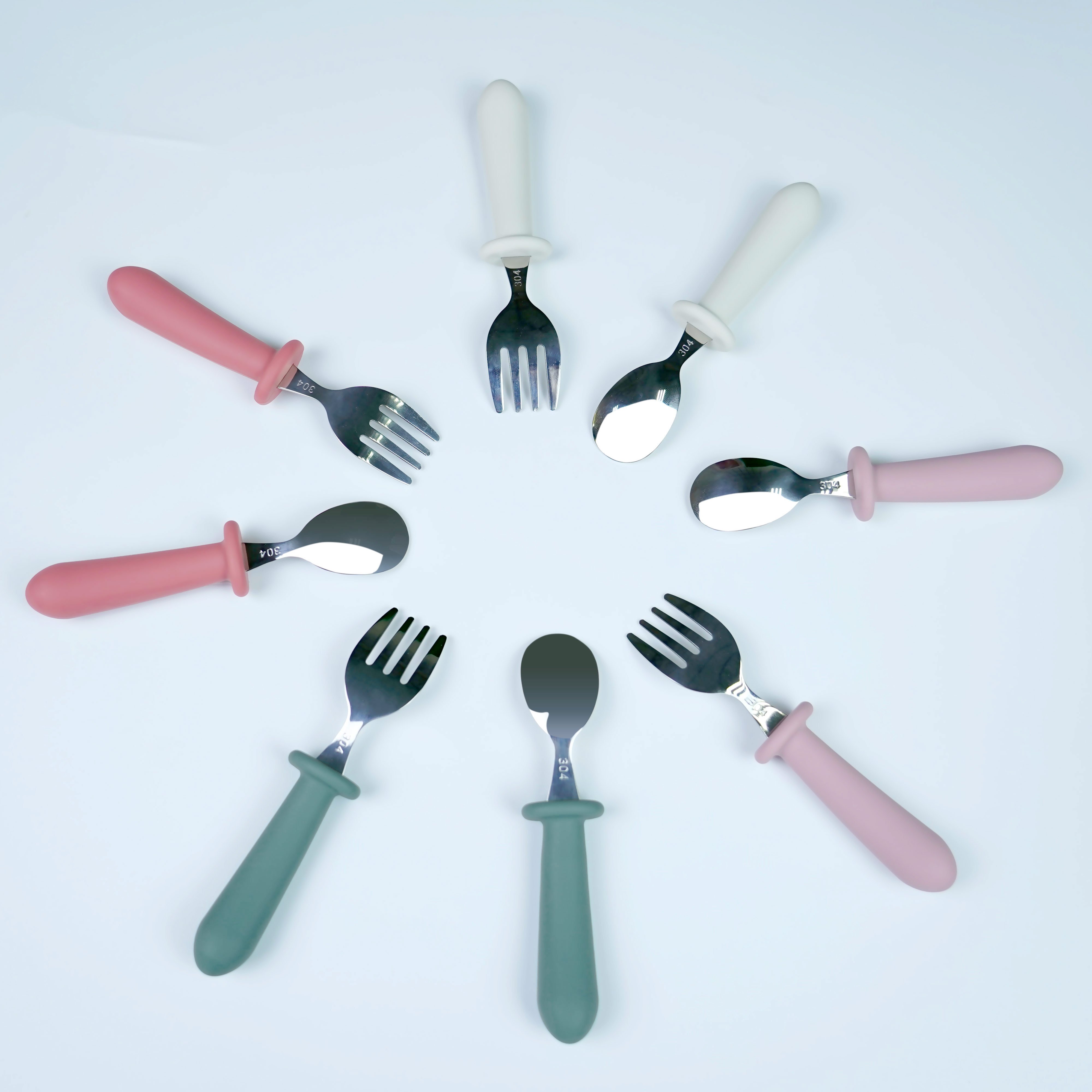您的位置:首頁 > 產品中心 > 硅膠嬰童用品 > 兒童不銹鋼餐勺 硅膠手柄寶寶吃飯短柄叉勺 寶寶叉勺套裝餐具