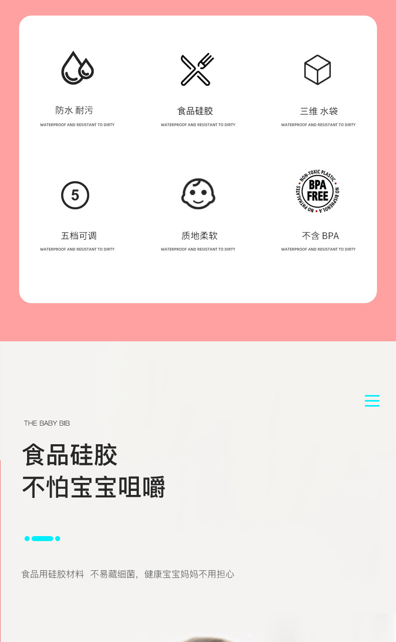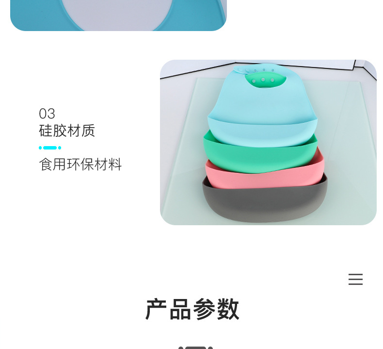科泰利所生產(chǎn)的硅膠圍嘴兜,選用食品級環(huán)保原材料制作,材質(zhì)可以信賴,它由科泰利硅膠制品廠家經(jīng)過200多度高溫加工成型,耐溫防水防油,清潔方便,水沖即可,可以反復使用。而且硅膠圍兜現(xiàn)在普遍采用3D立體設(shè)計,凹槽可以輕松兜住食物,這樣的設(shè)計就是在存放的時候比棉質(zhì)占空間。此外硅膠除了作為圍嘴兜也一樣可以做其他嬰童硅膠制品。
