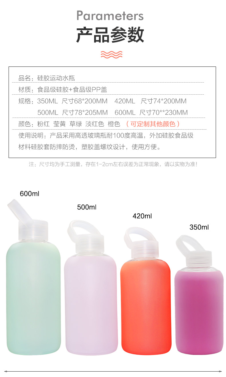 【材質】:食品級硅膠+食品級PP蓋+耐熱玻璃