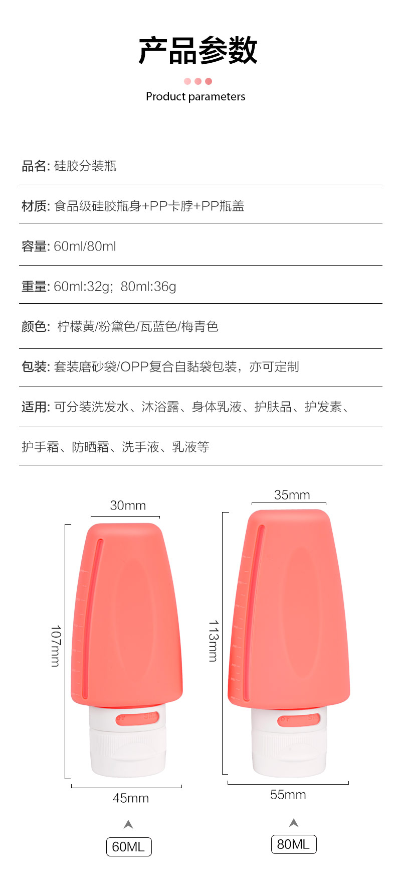 您的位置:首頁(yè) > 產(chǎn)品中心 > 硅膠家居用品 > 防漏硅膠分裝瓶便攜式出差旅行洗漱分裝瓶套裝化妝瓶乳液瓶